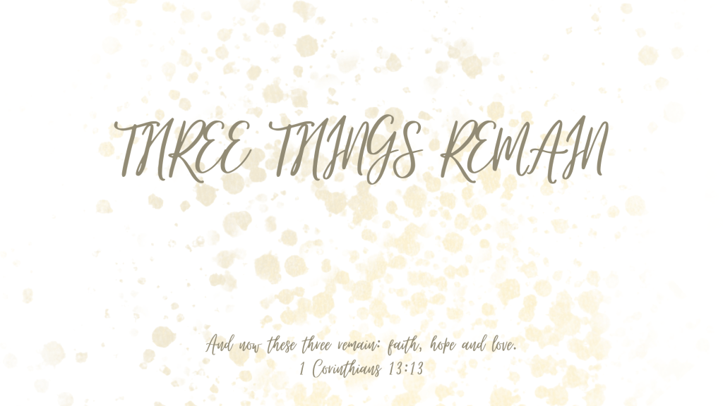 Welcome to Three Things Remain, a project that has lingered in my thoughts for years, hindered by my own pursuit of perfection. However, the dawn of 2024 marks a pivotal moment as I wholeheartedly commit to transforming this long-held vision into tangible reality. As my personal faith has deepened over time, I’ve discerned three foundational themes crucial to my spiritual growth. In the crucible of life’s trials, God has unfailingly brought my religious misconceptions, flawed thinking, and negative self-perception to the surface, laying bare their impurities. As humans, we deal with so much noise everyday, much of which is lies from our adversary. What endures after the refining fire of life’s trials burns away the dross? Just as the apostle Paul asserted in 1 Corinthians 13:13—only three things remain: “faith, hope, and love”. Join me on this journey as we explore and embrace these enduring pillars together.
